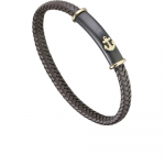 Bracelet Cuir tresses et motif ancre en acier